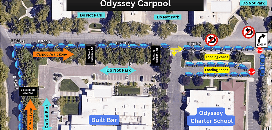 *If you are wanting to carpool with another family, please contact the front office at office@odysseycharter.net and we will issue you a separate yellow “group carpool” card to display on your rear view mirror. This will be a different number that will include every student in your group.